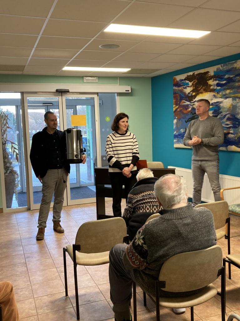 Dne 25. 1. 2024 zaměstnanci ze Střední školy designu a módy, Prostějov obdarovali naši organizaci - zakoupili nám ohřívače na teplé nápoje. Dar přijel osobně předat ředitel SŠDAM Mgr et MgA. Vojmír Křupka a Mgr. Gabriela Altmannová. Touto cestou bychom všem ještě jednou chtěli poděkovat. Následovalo hudební vystoupení žáků ZŠ Plumlov, kteří nás pravidelně navštěvují, protože naši klienti mají jejich vystoupení moc rádi.